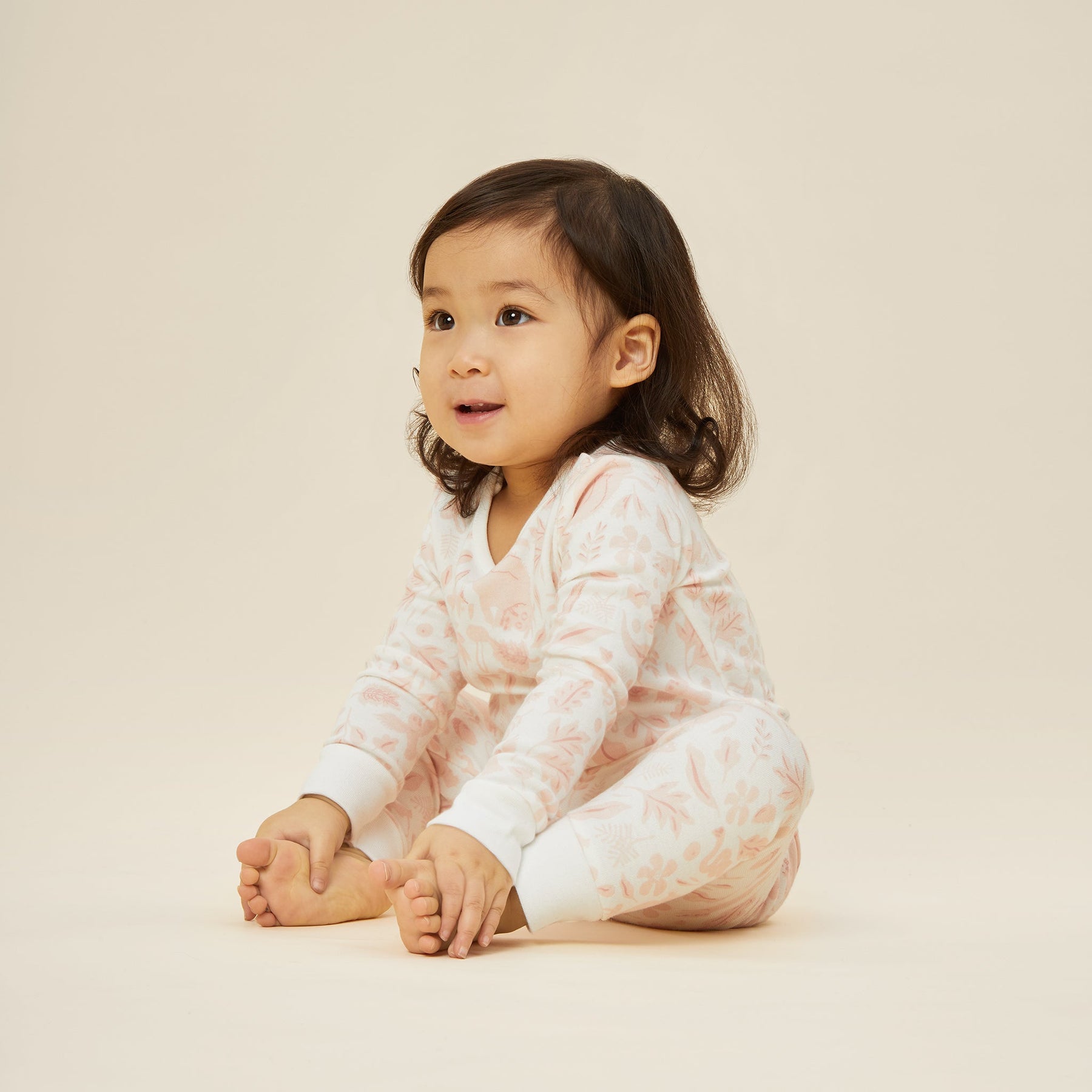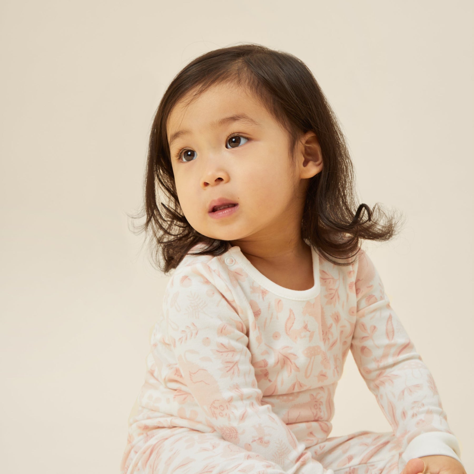 Created for sleepy little mice, the Gruffalo Foxglove Pink Pyjamas are made in our signature organic cotton and bamboo fabric. The pyjamas are supersoft and gentle on the skin. The top has poppers up to 2 years to make dressing simpler.
