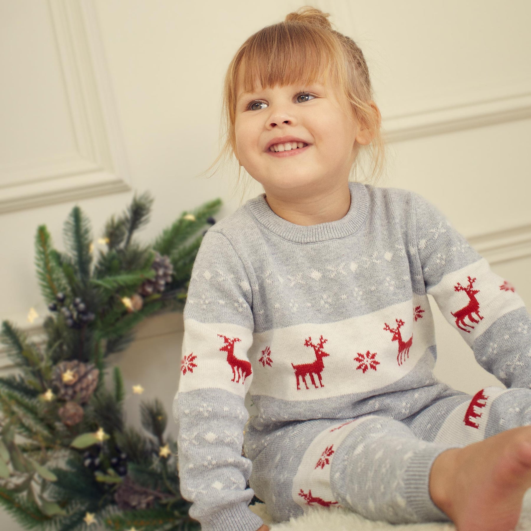 Wrap them up in softness with our Knitted Reindeer Jumper & Joggers Outfit. Made from soft organic cotton, the outfit will keep them toasty and warm on wintry adventures. The bottoms have an elasticated waistband for easy on-and-off.