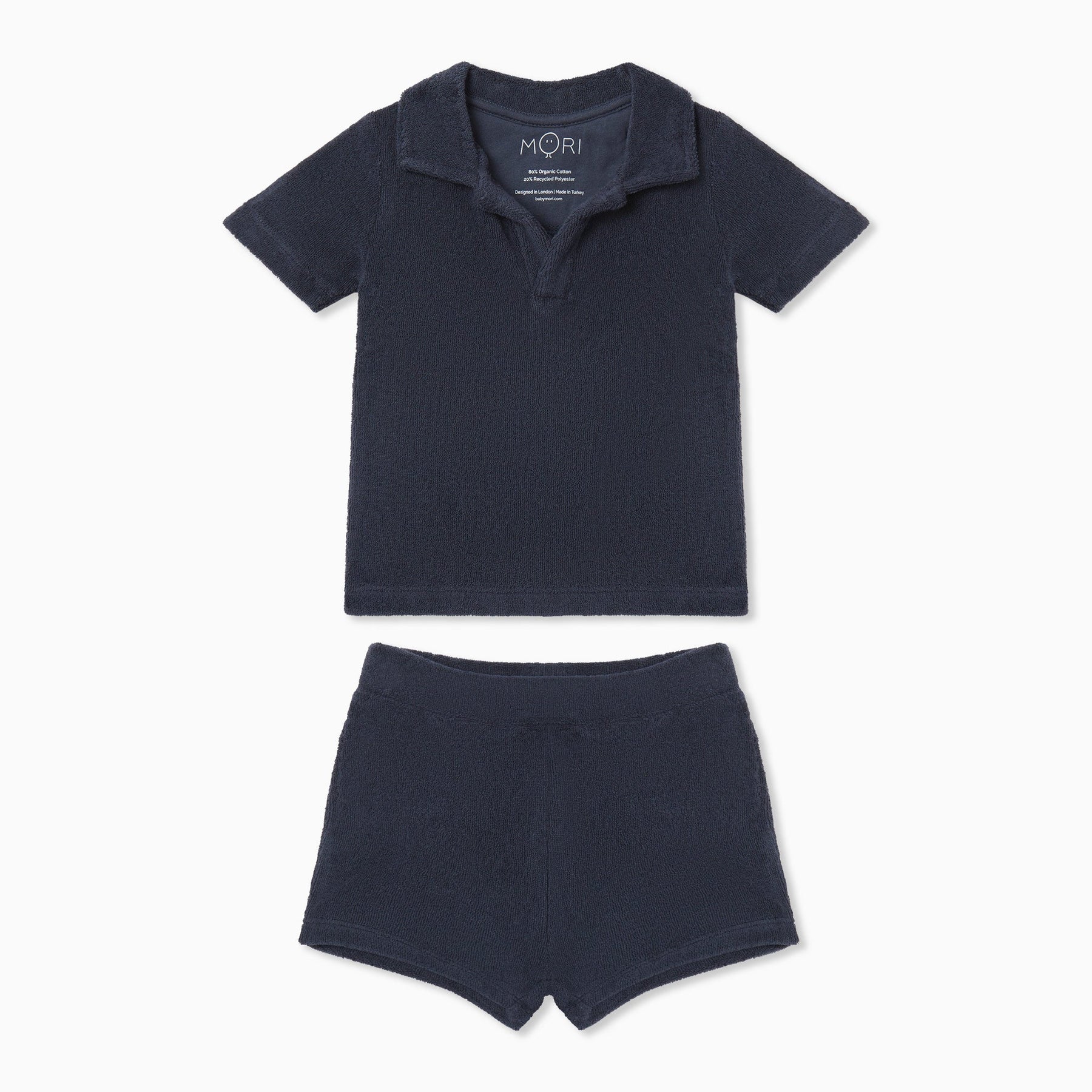 Get them set for summer days playing outside with our Terry Towelling Polo Shirt & Shorts Outfit. Made from soft organic cotton, the fabric is breathable & moisture-wicking to keep them at the perfect temperature.