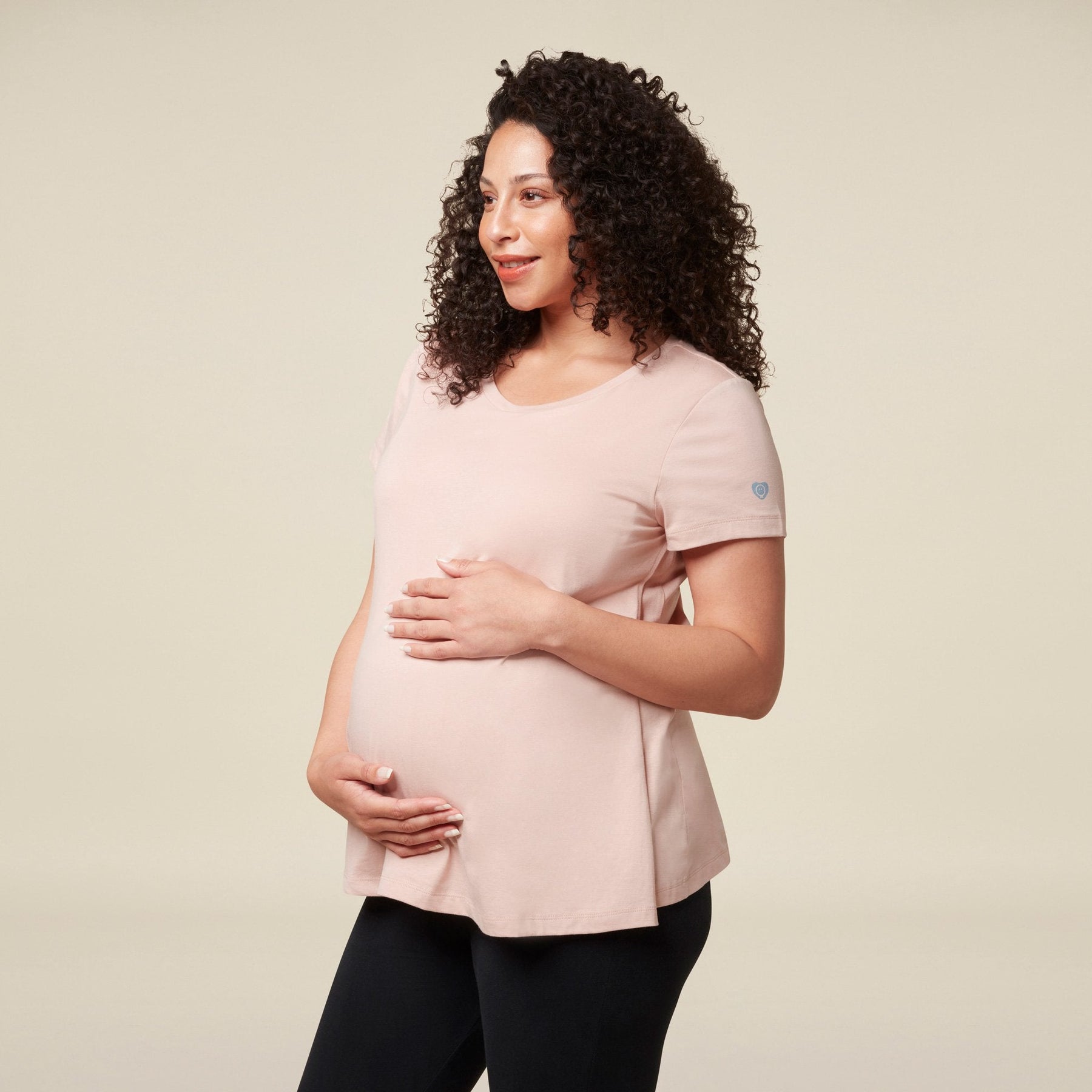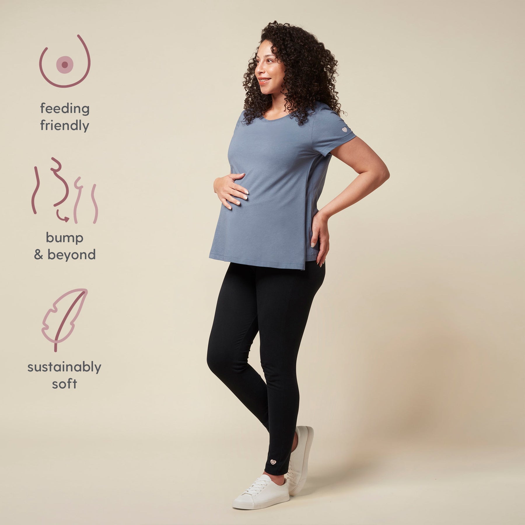Made from the softest organic cotton, our Maternity & Nursing T- Shirt is designed to keep you comfortable through pregnancy and beyond. It's cut to a generous fit for a growing bump and still looks stylish post-pregnancy. We've added easy nursing access through a concealed vertical split, simply lift the outer layer to feed or pump.