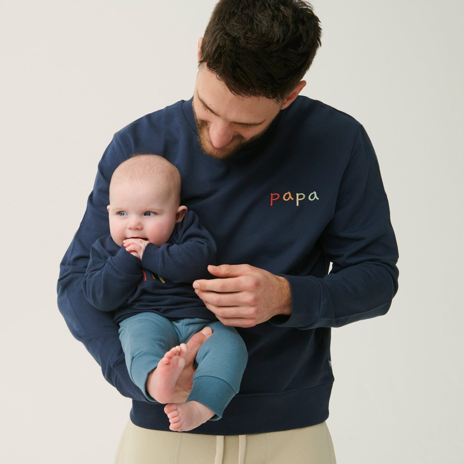 The Papa Sweatshirt will let the world know you're a proud parent with a stylish embroidered slogan. Crafted from organic cotton, it has a brushed inside for softness and ribbed detailing on the cuffs and hem for a comfortable fit.