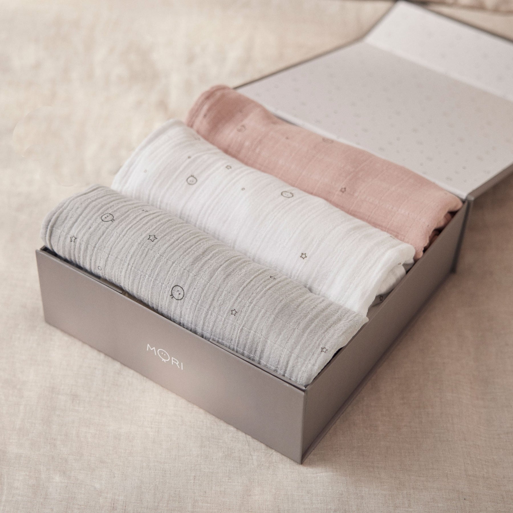 Our Pre-Washed Regular Muslin 3 Pack ensures parents will be ready for any moment, from mopping up spillages to discreet breastfeeding. They are crafted in soft and breathable cotton for comfort on your little one's skin. Each muslin features a MORI print in one corner.