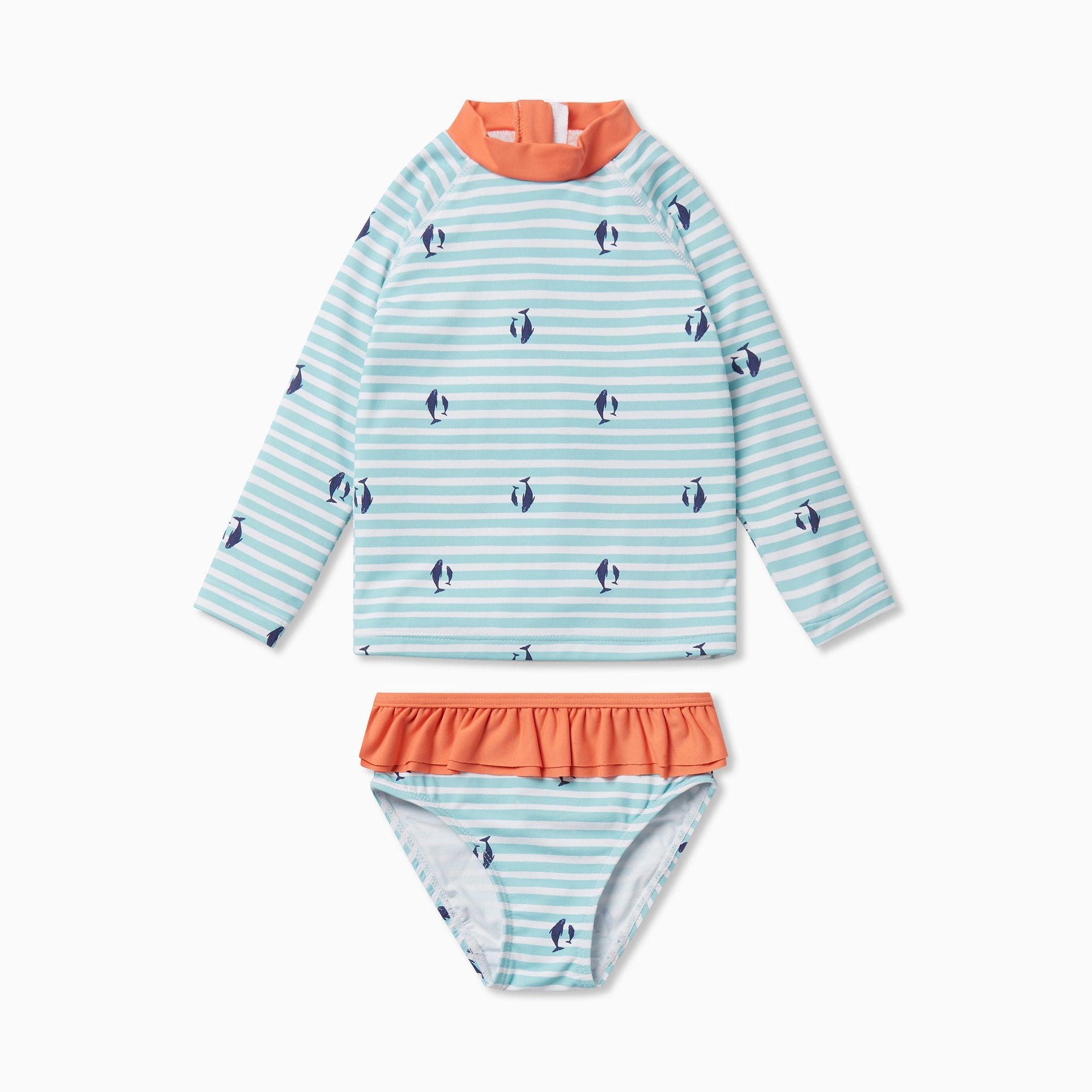 Your little water baby will be ready for the pool with our Rash Vest & Swim Pants. They both have a UPF 50+ rating with the Vest featuring a high neck & long sleeves for extra protection from the sun. Crafted in recycled nylon with a touch of stretch for a comfortable fit.