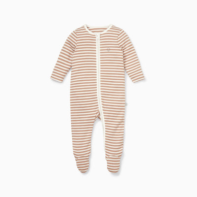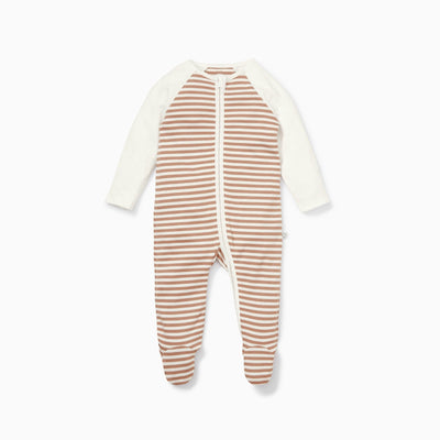 Caramel Stripe Raglan Zip-Up Sleepsuit