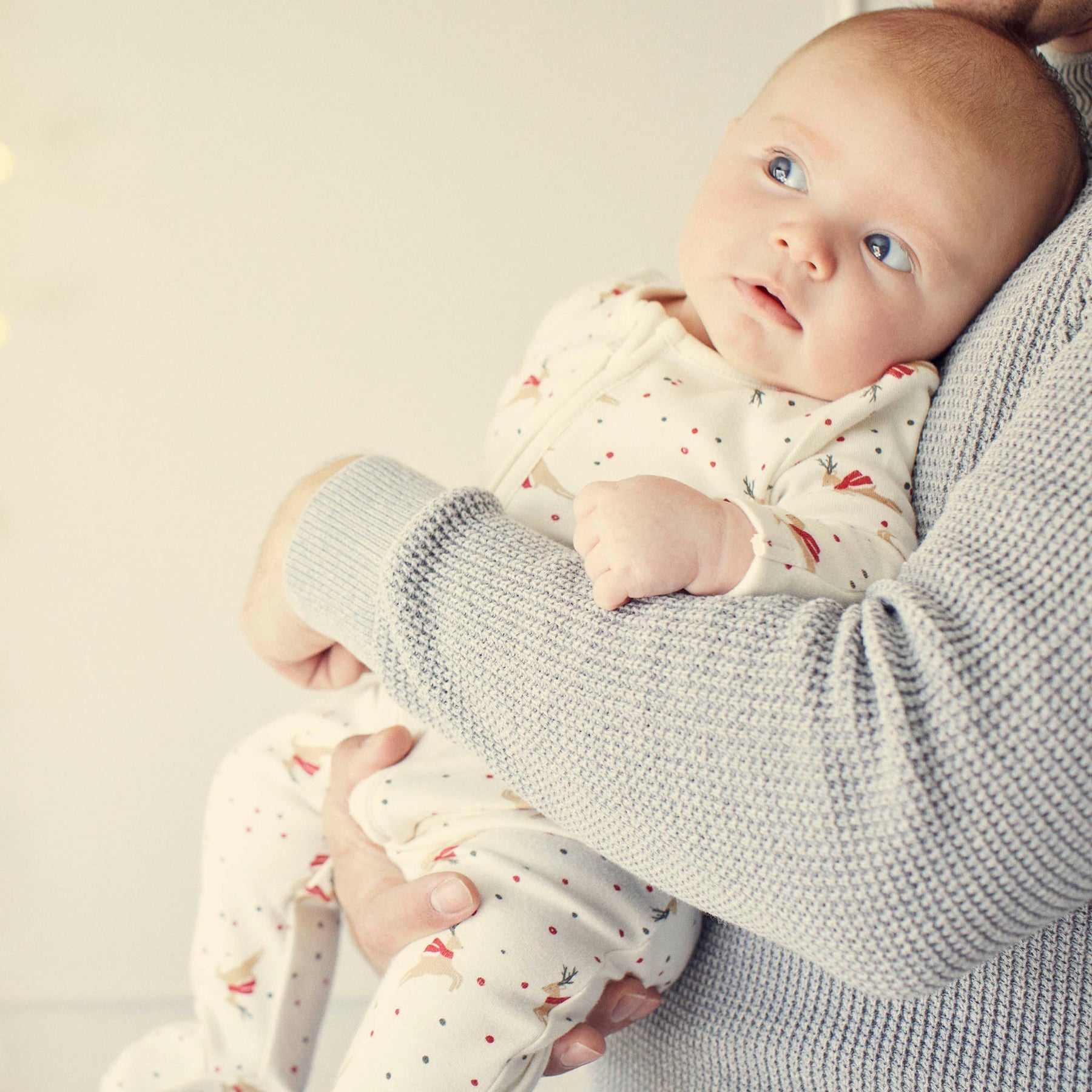 Make bedtime softer this season with our Reindeer Print Clever Zip Sleepsuit. A handy two-way zip makes dressing & changing simpler and it's made from our breathable signature fabric for comfort.