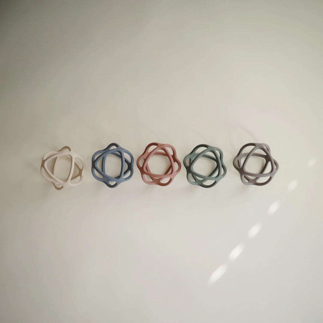 The Mushie Silicone Teether Ball is a stylish and safe option to soothe your little one's sore gums. It's made from non-toxic, food-grade silicone and designed to be easy to grasp.