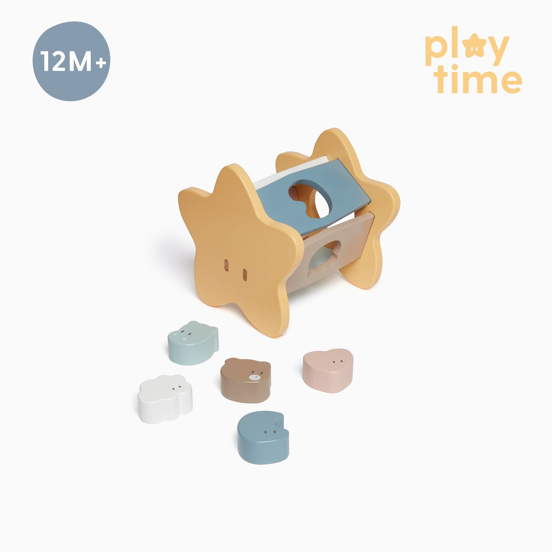 Our Wooden Star Shape Sorter is a clever way for little ones to develop their understanding of shapes & colours. The chunky blocks are a mix of celestial and safari characters painted in muted tones. As well as teaching problem-solving skills, the toy is designed to encourage hand-eye coordination & fine motor skills. The soft edges make it safe for play.