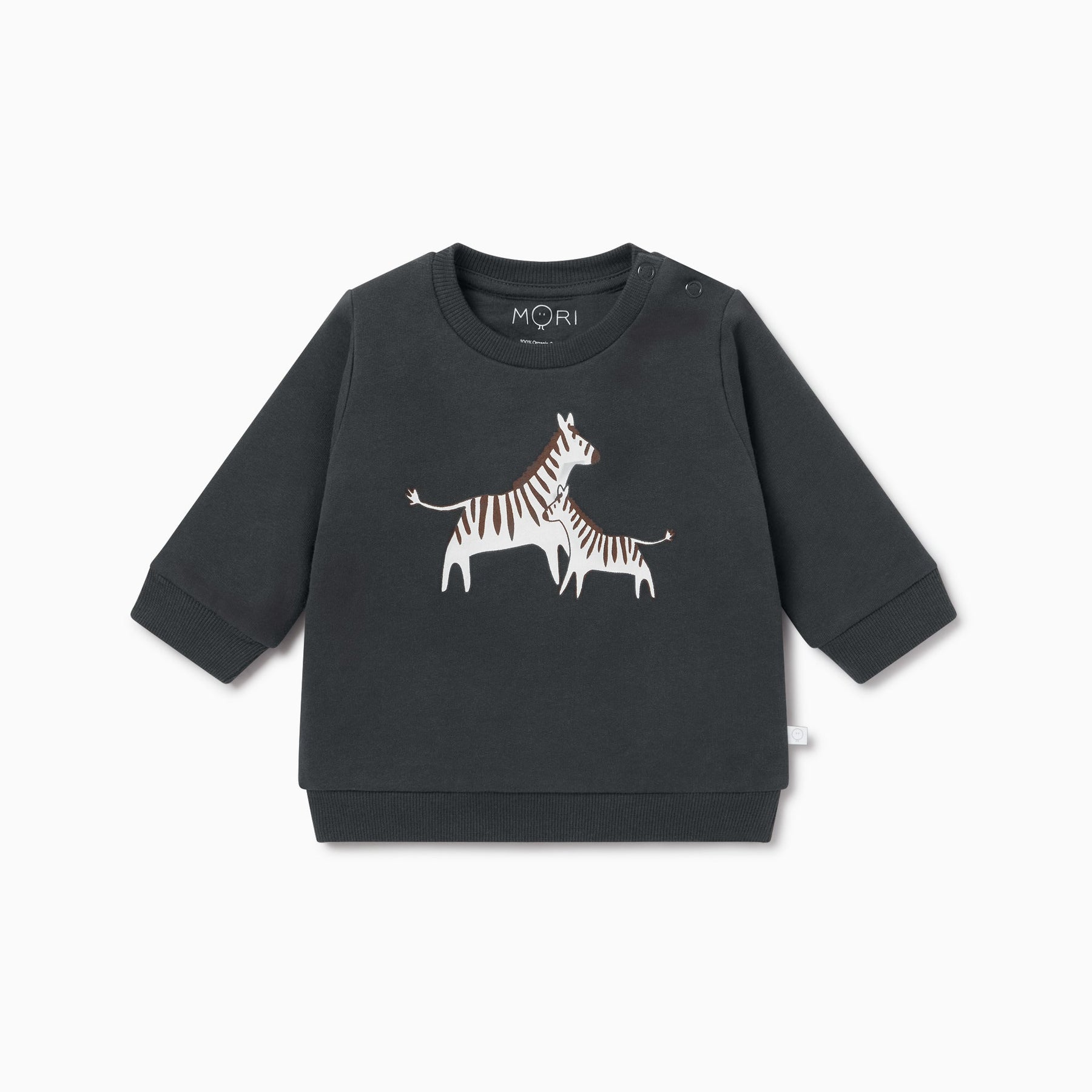 They'll be ahead of the herd with our Zebra Sweatshirt. It's made from organic cotton with a brushed inside for an extra soft feel. We've added popper fastenings on the shoulder for little ones under 2 to make dressing easier.